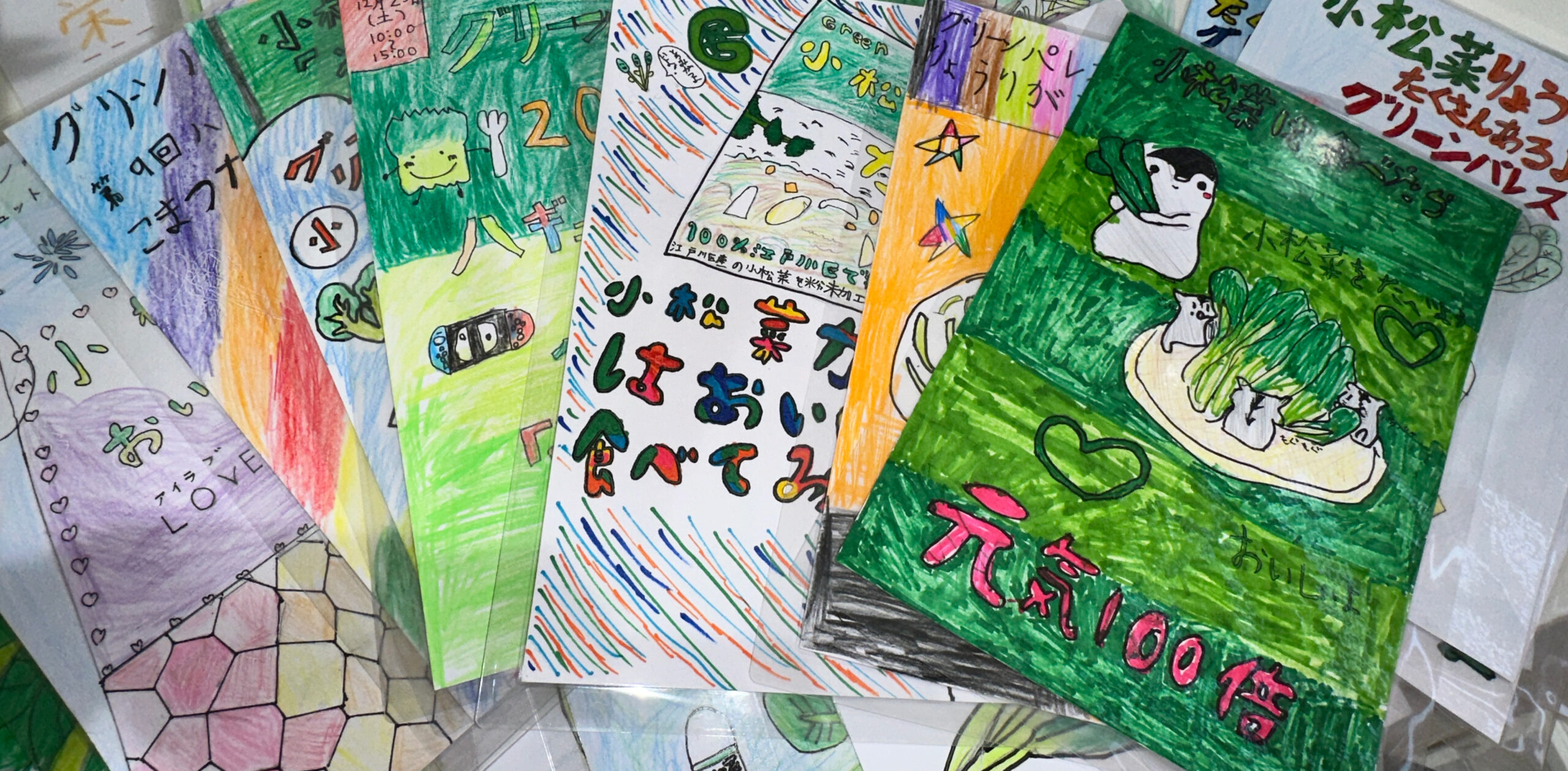 江戸川区立第三松江小学校3年生による、小松菜PRポスターをハギュットフェスの日より、江戸川区民センターグリーンパレスに掲示スタートします。この取り組みは、授業内で、小松菜PRポスター制作を通じて、江戸川区特産の小松菜の理解を深めているようです。