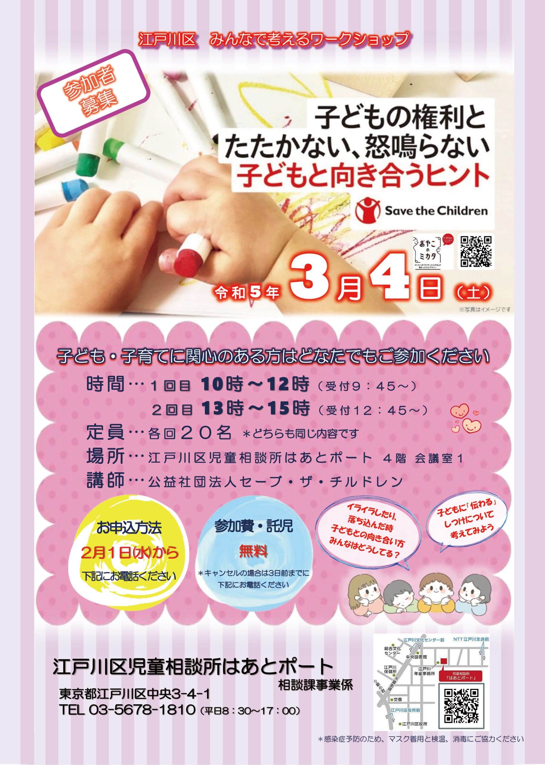 ワークショップ参加中の託児も行います。参加費・託児は無料です。