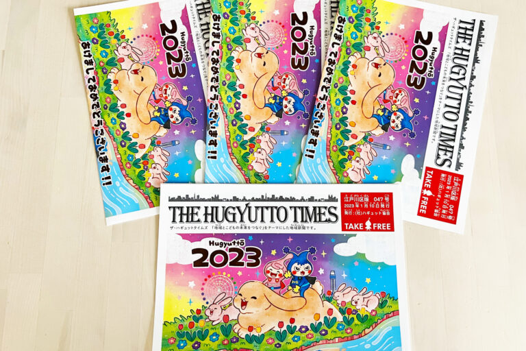 来年のハギュットカレンダーが完成しました! 2023年のカレンダーは、ハギュットマン&バグるんが大きなふわふわのうさぎに乗り、江戸川区のまちで楽しんでいる様子が描かれています。 来年はうさぎ年ということで、うさぎたちと一…
