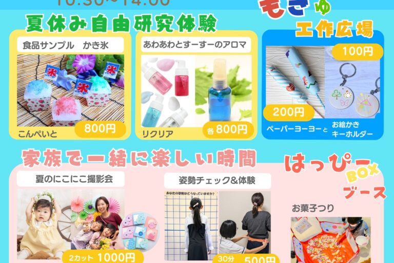 今年の夏休みも自由研究サポートワークショップ満載! 食品サンプルつくりや夏の思い出に写真撮影ができる、あ・たそか・もきゅの夏祭りが今年も開催されます! 夏休みを楽しもう もきゅ夏祭り 自由研究としても活用で…
