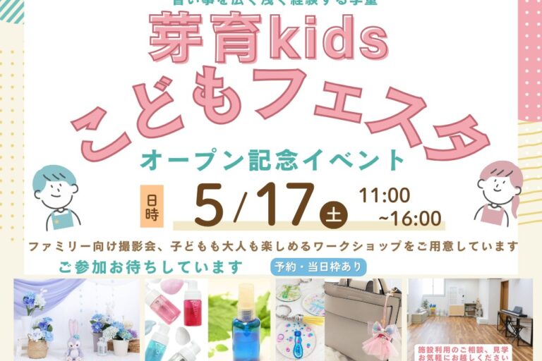 5月17日(土)【習い事を広く浅く経験する学童 芽育kids のオープン記念イベント】 芽育kids こどもフェスタ