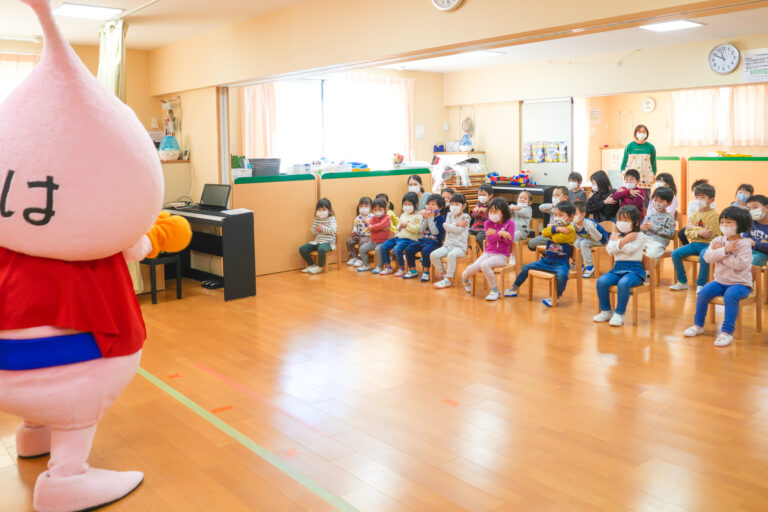 2月18日(金)はココファンナーサリー篠崎に訪問。 コロナ禍でイベントができなかった園児たちが本当に楽しそうに踊ったり、喜んだりしてくれました! 喜んでいる表情が何よりのプレゼントです!! ハギュットキャラ…