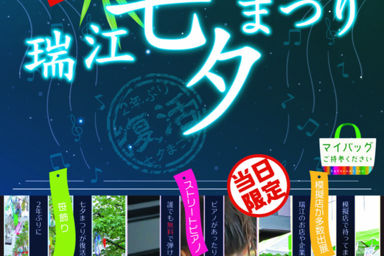3年ぶりに「瑞江 七夕まつり」開催。 今年は瑞江駅前に1日限りの「ピアノ」が出現。 大人も子供も無料で弾ける「瑞江ストリートピアノ」で七夕まつりを盛り上げてください! もちろん恒例の笹飾りもいたします。一部のお店や企業で…