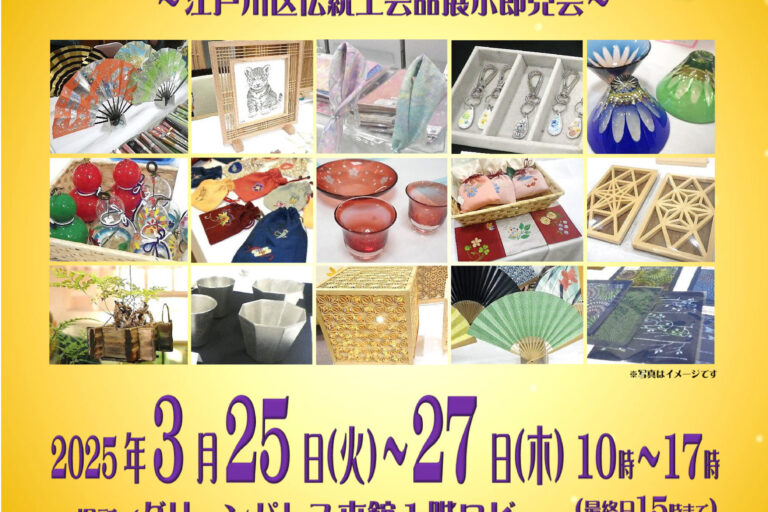 江戸川区伝統工芸品の展示・販売会を実施いたします。 この機会に江戸川区の匠の技をご覧ください。 交流都市の産直物産品の販売・江戸川区産小松菜の販売も同時開催いたします。 ■「伝統工芸を楽しむ3日間」イベント…