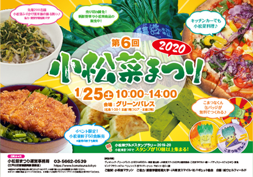 説明江戸川区特産「小松菜」を盛り上げる毎年恒例になっているイベント、小松菜まつり。 江戸川区の飲食店や商店、農家などが、美味しい小松菜料理や商品、新鮮野菜などを販売するイベントです。また、イベント内で第6回小松菜グルメスタン…