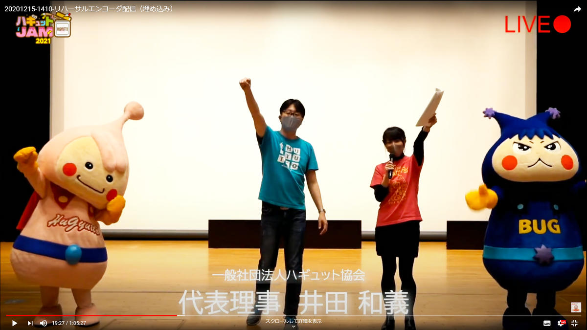 説明ハギュットジャム開催まで1か月を切り、主催者側も慌ただしい毎日を送っています。 今回、多くの方々が「こども達の笑顔」のために協力してくださっています。 イベント当日のシナリオに沿って、配信の流れ、音響チェック、カメラアン…