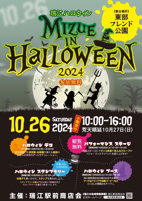 説明今年も瑞江を盛り上げるハロウィンイベント”瑞江ハロウィン2024”が開催されます! フードやドリンク、子供向けゲームなど魅力的な模擬店が並び、パフォーマンスステージでは 過去最多の14団体によるパフォーマンスが繰り広げら…