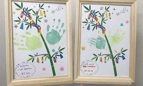 説明今回、ハギュットフェスで葛西新聞さんが「たなばた手形アート」で出展します♪ 自分の手形でたなばた飾りをつくりましょう♪ 「ささのは」を手形で作って星のシールでデコレーション!! 今年の願いごとやメッセージを書いて完成です…