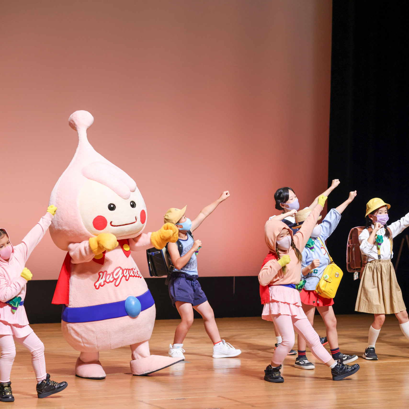 ハギュットマングリーティングショーを観てくれた清新めぐみ幼稚園。総勢180名の園児がテーマソングである『未来をまもるよハギュットマン』を踊ってくれました!ハギュットマンの「優しさ」という強さを学ぶことができた園児たち。これから、きっとまわりの人に勇気と優しさを伝えてくれるでしょう!!
